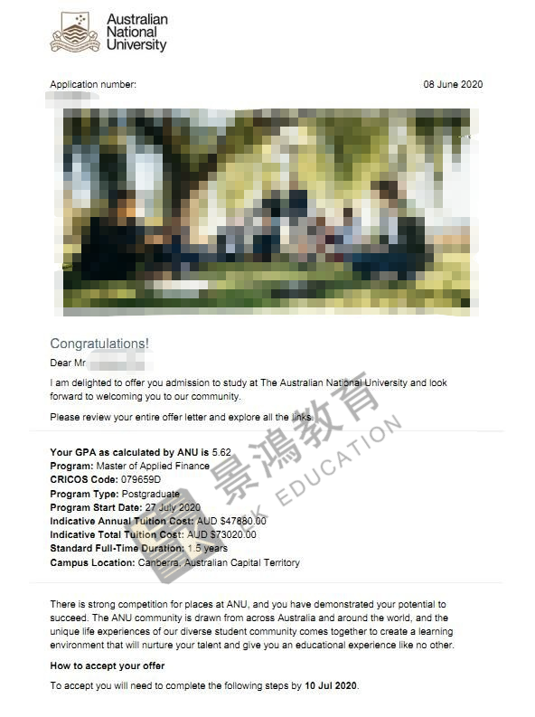 录取结果:澳洲国立大学,澳洲排名第一,2020年QS全球排名#29;录取专业Master of Applied Finance。