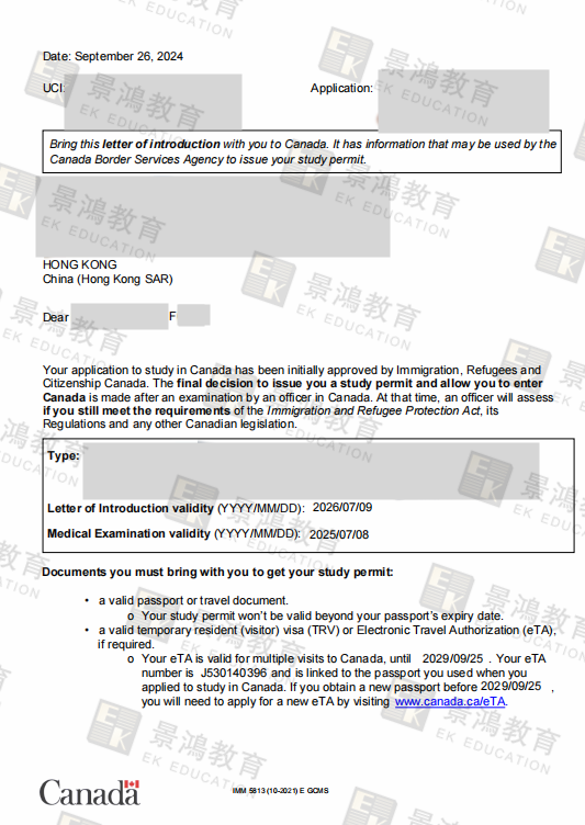 学校录取结果出来后,F女士非常高兴!随后,景鸿教育文案团队便着手准备加拿大学签申请的工作,在9月递交了申请。审批时间不到三周,F女士顺利获批加拿大学签!