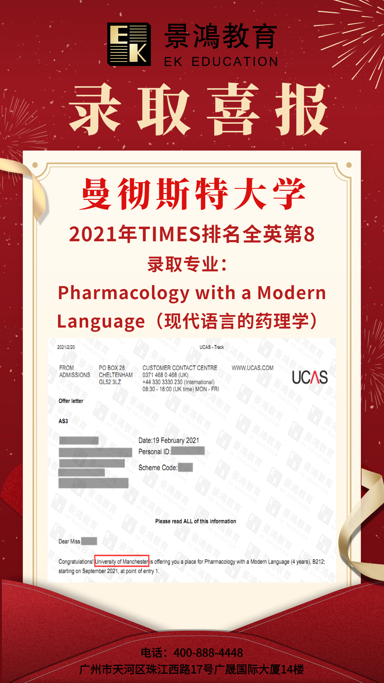 景鸿顾问点评:D同学拥有良好的背景及硬件成绩,高中生毕业后申请世界名校最大的障碍是语言,而他提前前往加拿大留学就读高中,可以锻炼英语能力,提高进入名校的几率。我们通过综合整理D同学的成绩单、参与活动等资料,协助其完善文书工作,成功帮助他获得曼彻斯特大学的offer!